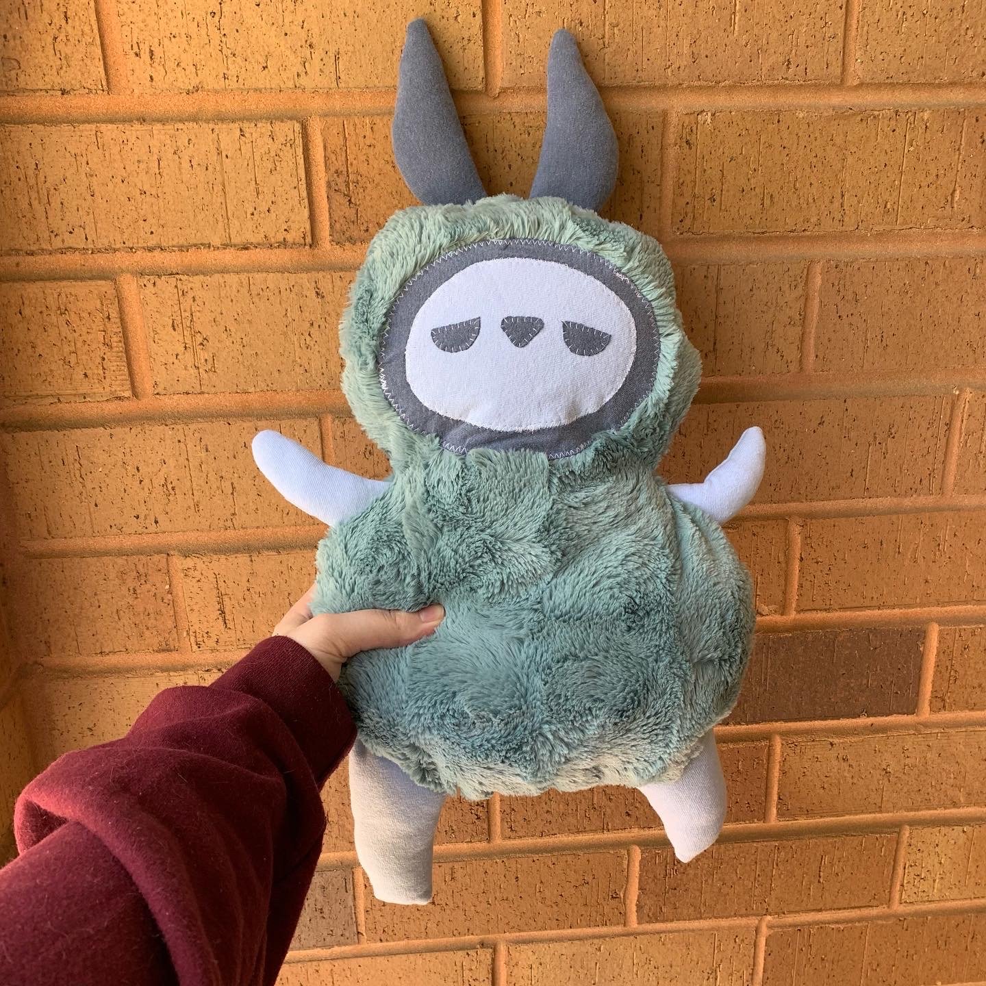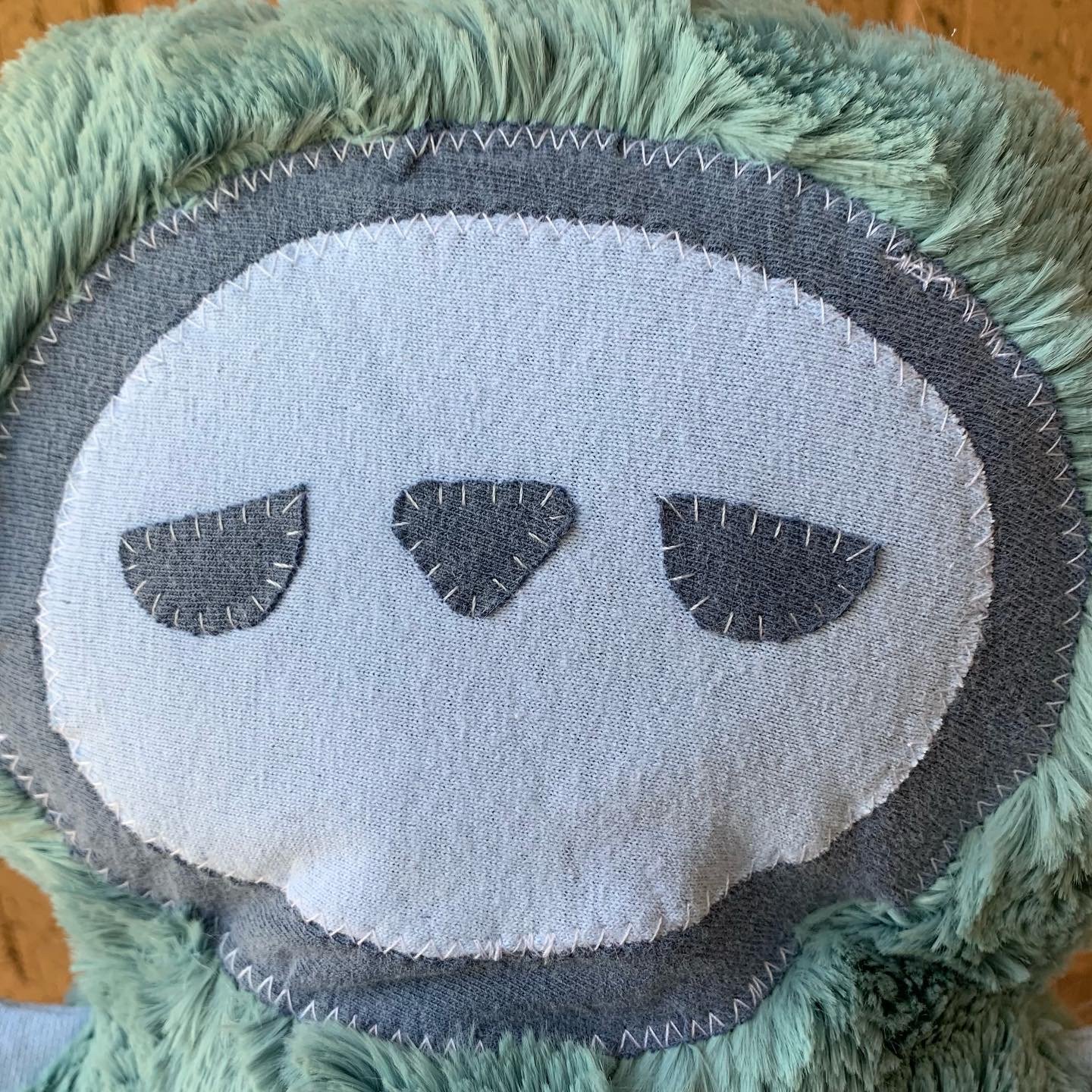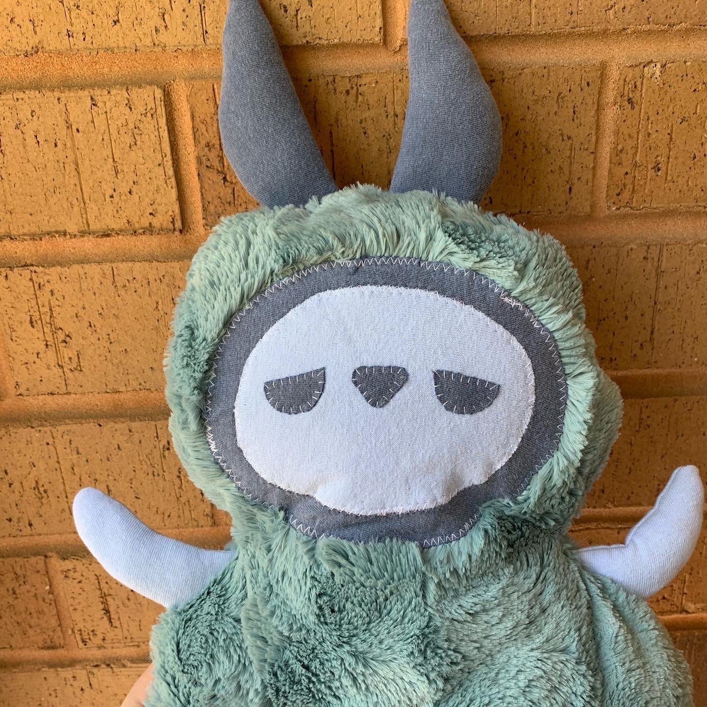 Spoon is a bit of a trickster but that’s what makes him so fun! Spoon is about 14” tall made of faux fur and upcycled tees.